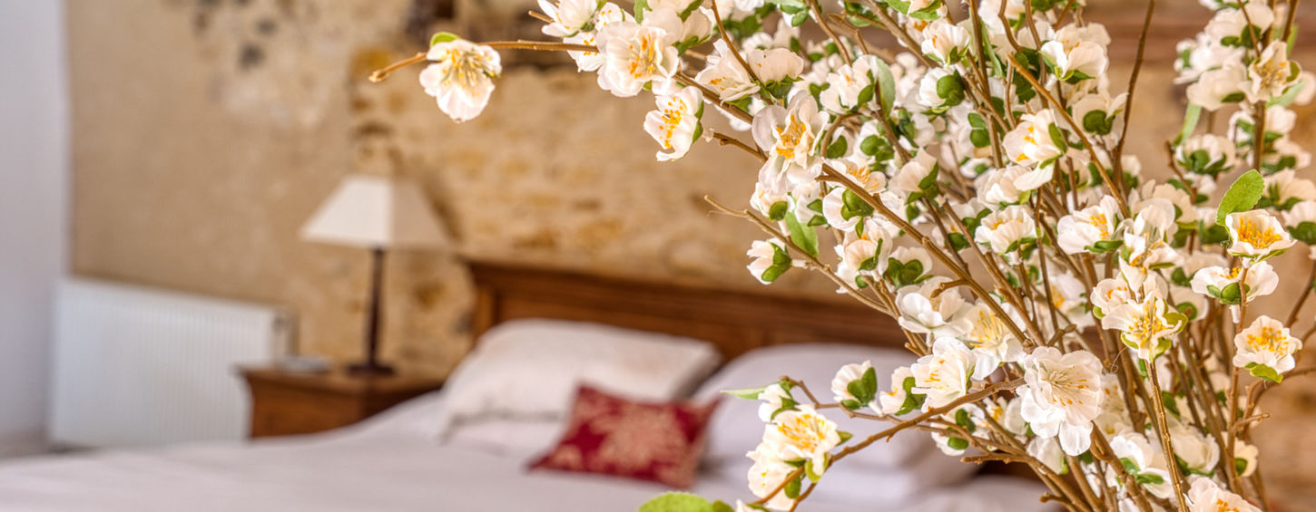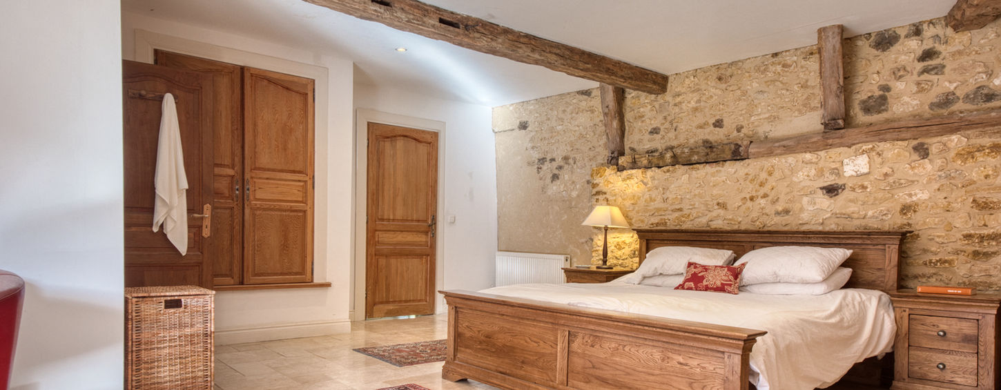 Château la Courdie offers four recently renovated double bedrooms, each with its own private ensuite bathroom, making it perfect for families or friends seeking both comfort and privacy Exposed wooden beams and natural stone walls give each room a warm, authentic French character. One of the bedrooms also has a traditional writing desk in the room so you can work in all privacy and calmth